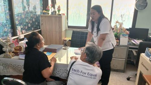 นางนารีรัตน์ แย้มกลิ่น พัฒนาการอำเภอเมืองระยอง มอบหมายให้นางสาวรสิตา มั่นเจริญ นักวิชาการผู้รับผิดชอบงานกองทุนพัฒนาบทบาทสตรี ดำเนินการทำสัญญาขอรับการสนับสนุนเงินกองทุนพัฒนาบทบาทสตรี