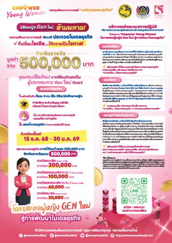 ประชาสัมพันธ์โครงการ "Empower Young Women โอกาสของผู้หญิง Gen ใหม่ สู่การพัฒนาโมเดลธุรกิจ" ระยะเวลา 15 ธันวาคม 2568 - 30 มกราคม 2569